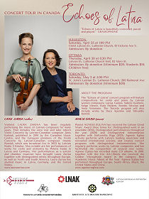 🇨🇦 TILTS is delighted to announce the "ECHOES OF LATVIA" Concert Tour in Canada with violinist Laura Zarina and pianist Agnese Egliņa from April 25 to May 2, 2026 organized in coordination with the Latvian National Federation in Canada/Latviešu Nacionālā Apvienība Kanadā, Christ Latvian Evangelical Lutheran church in Hamilton, the Toronto Latvian Concert Association and Embassy of Latvia in Canada / Latvijas vēstniecība Kanādā Further information: via the QR code or at www.tilts.org (Events section).  2026 Mar 16